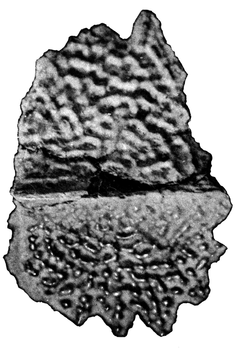 The ventral scutes are the most poorly preserved of all the series of scutes in our specimens. Only the left side of FMNH PF17607 preserves what appears to be a complete series of elements, comprising 11 scutes; the precise shape of the ventral scutes cannot be determined. The scutes appear to be closely set to one another, if not overlapping (Fig. 16). A single isolated specimen (Fig. 17.4) was identified as the anteriormost ventral scute, based on its similarity to that element in extant sturgeons (Hilton et al., Reference Hilton, Grande and Bemis2011, fig. 104), being relatively tall and angular.