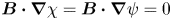 $\boldsymbol {B} \boldsymbol {\cdot } \boldsymbol {\nabla } \chi = \boldsymbol {B} \boldsymbol {\cdot } \boldsymbol {\nabla } \psi = 0$.
