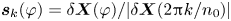 \begin{equation} \mathcal{L}_{\bar{\boldsymbol{X}}} = \bar{\boldsymbol{X}}_k + \int_{2{\rm \pi} k/n_0}^{2{\rm \pi} (k+L)/n_0} \left( \frac{\textrm{d}\boldsymbol{X}}{\textrm{d}\varphi} - \boldsymbol{V} \right) \boldsymbol{\cdot} \mu_{\bar{\boldsymbol{X}}_k} \textrm{d}\varphi {.} \end{equation}