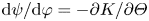 $\textrm {d}\varTheta / \textrm {d}\varphi = \partial K / \partial \psi$ and