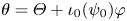 $\theta \simeq \iota _0 (\psi _0 ) \varphi + \theta _{\text {i}}$, where