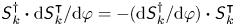 $\textsf {S}_k^{{\dagger} } \boldsymbol {\cdot } \textrm {d}\textsf {S}_k^{\intercal } / \textrm {d}\varphi = - ( \textrm {d}\textsf {S}_k^{{\dagger} } / \textrm {d}\varphi ) \boldsymbol {\cdot } \textsf {S}_k^\intercal$ (from the chain rule and