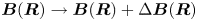 $\boldsymbol {B}(\boldsymbol {R}) \rightarrow \boldsymbol {B}(\boldsymbol {R}) + \Delta \boldsymbol {B}(\boldsymbol {R})$, where the change in magnetic field is given by
