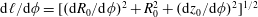 (C 10) $$\begin{eqnarray}\unicode[STIX]{x1D708}_{1}=\left(\frac{\text{d}\ell }{\text{d}\unicode[STIX]{x1D719}}\ell ^{\prime }\right)^{-1}\left(R_{1}\frac{\text{d}R_{0}}{\text{d}\unicode[STIX]{x1D719}}+z_{1}\frac{\text{d}z_{0}}{\text{d}\unicode[STIX]{x1D719}}\right).\end{eqnarray}$$