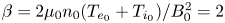 . The total plasma beta, $\beta = 2 \mu _0 n_0 (T_{e_0} + T_{i_0})/B_0^2 = 2$