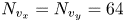 , with zero-flux boundary conditions at the velocity-space limits and $N_{v_x} = N_{v_y} = 64$