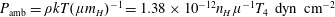 $P_{\text{amb}}=\unicode[STIX]{x1D70C}kT(\unicode[STIX]{x1D707}m_{H})^{-1}=1.38\times 10^{-12}n_{H}\unicode[STIX]{x1D707}^{-1}T_{4}~\text{dyn}~\text{cm}^{-2}$