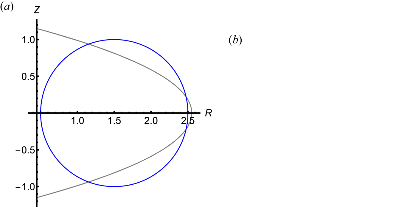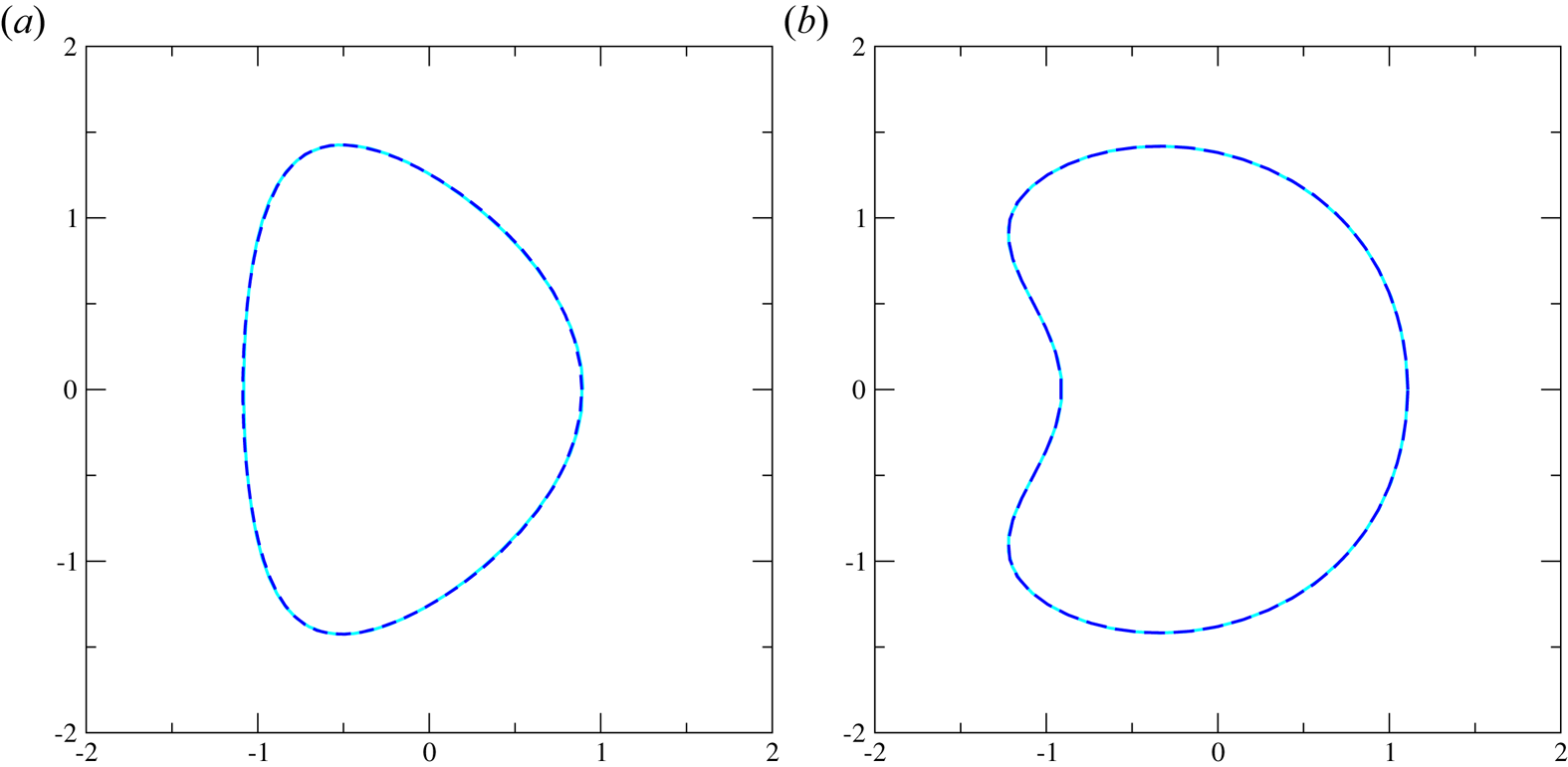 Figure 12. D shape and bean shape reproduced based on Hirshman & Meier (Reference Hirshman and Meier1985), where the solution of our boundary representation overlaps with the original boundary: (a) D shape; (b) Bean shape.
