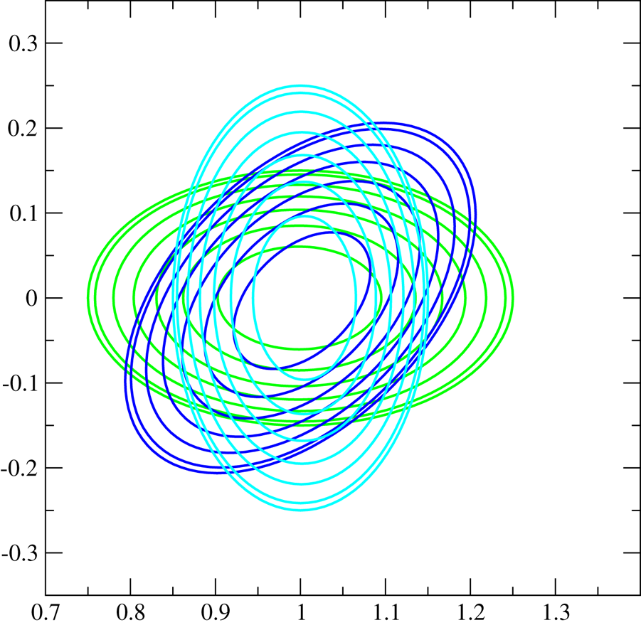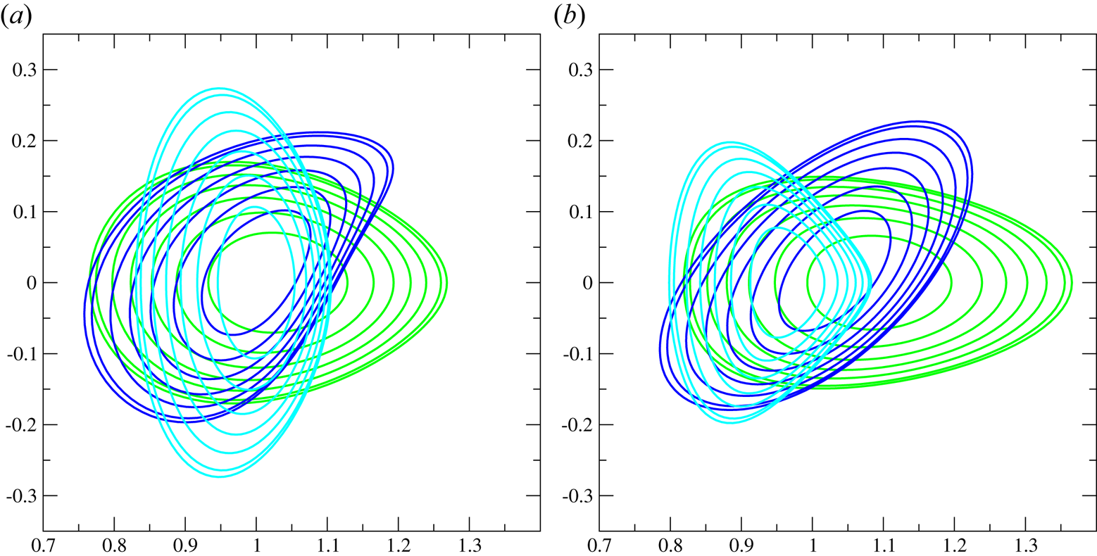Figure 14. Flux surfaces at different toroidal cross-sections of rotating ellipse at toroidal angle $\varphi =0^{\circ }$