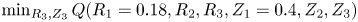 , and study how the landscape depends on the remaining ones. We note that the function $\min _{R_3,Z_3} Q(R_1=0.18,R_2,R_3,Z_1=0.4,Z_2,Z_3)$