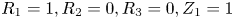 , there is one global minimum at $R_1=1,R_2=0,R_3=0,Z_1=1$