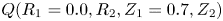 , there is only one minimum. It is thus clear that a local optimizer that seeks local minima of the function $Q(R_1=0.18,R_2,R_3,Z_1=0.4,Z_2,Z_3)$