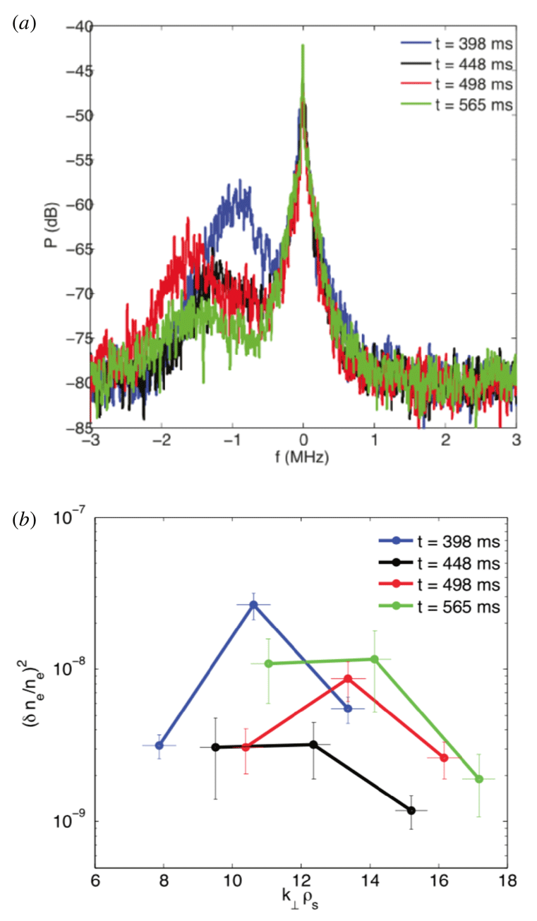 Reference Ernst, Burrell, Guttenfelder, Rhodes, Dimits, Bravenec, Grierson, Holland, Lohr and Marinoni2016), with an example comparing a synthetic spectrum from the GYRO code to an experimental spectrum from DIII-D is shown in figure 18 (Ernst et al.