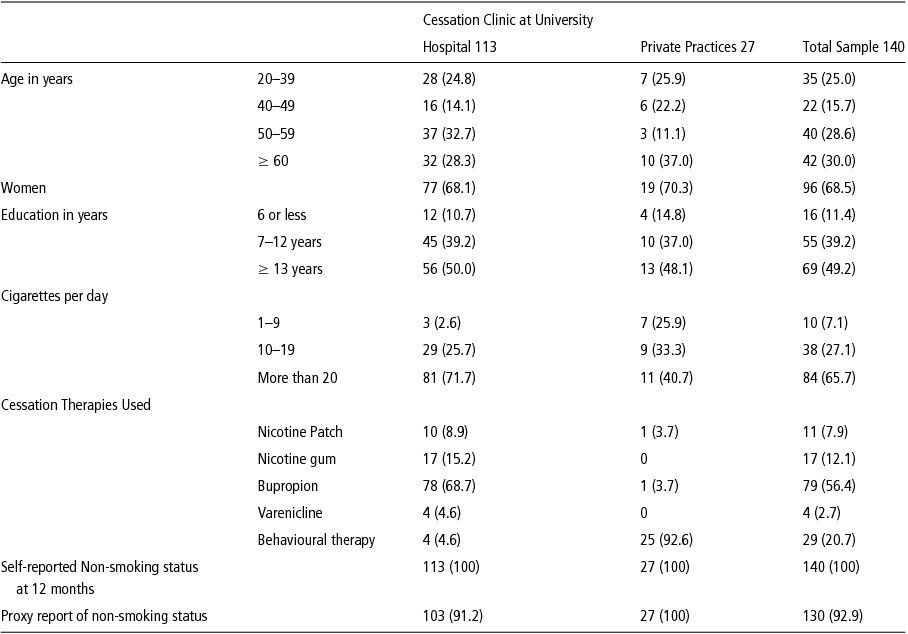 Table 1 Characteristics of 140 smokers reporting abstinence 12 months after cessation intervention, 2009–2011, Buenos Aires, Argentina