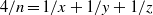 $\frac{1}{w} + \frac{1}{x} + \frac{1}{y} + \frac{1}{z} = \frac{1}{ 2} $