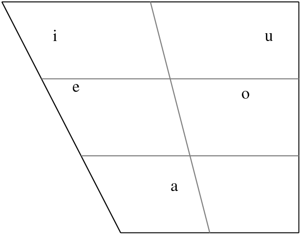 Descriptions of OM and/or Merina typically identify only four phonemic monophthongs (see Rasoloson & Rubino Reference Rasoloson2005, O’Neill Reference O’Neill2015). However, because collapse of orthographic vowel sequences ao and oa from diphthongs or vowel hiatus pairs into a fifth monophthong, [o], is now so common in Merina and in other urban dialects in the Central region (e.g. in the Betsileo city of Fianarantsoa), all five are presented in the vowel chart below and in the formant plot in Figure 4 below. Examples of the vowels follow subsequently.