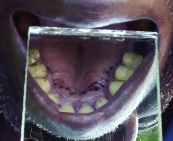 Figure 2 Palatogram of the alveolar plosive in [a t a] with well-defined contact on the alveolar ridge only.
