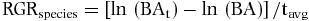 RGR was estimated for all species as: