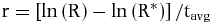 Where R* is the number of individuals alive in both censuses, R is R* plus new recruits, and tavg is the average census interval in years.