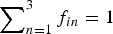$\sum\nolimits_{n = 1}^3 {f_{in} = 1} $