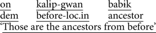 In this sequence, WI is contrasting some of the same concepts as in Example 1. He begins by explaining the term kalip-si-ŋgan (‘distant past’):