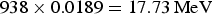 $ 938 \times {\rm 0}{\rm. 0189} = 17.73\,{\rm MeV}$.