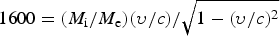 $1600 = (M_{\rm i} /M_{\rm e} )({\rm \upsilon} /c)/\sqrt {1 - ({\rm \upsilon} /c)^2} $, from which υ/c ≈ 0.4. The corresponding energy is