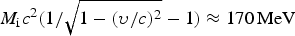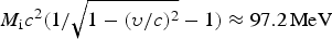 $M_{\rm i} c^2 (1/\sqrt {1 - ({\rm \upsilon} /c)^2} - 1) \approx 97.2\,{\rm MeV}$.