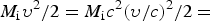 $M_{\rm i} {\rm \upsilon} ^2 /2 = M_{\rm i} c^2 ({\rm \upsilon} /c)^2 /2 =$