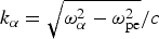 ${k_{\rm \alpha}} = \sqrt {{\rm \omega} _{\rm \alpha} ^2 - {\rm \omega} _{{\rm pe}}^2} /c$, and