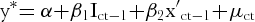 (2) $$\begin{equation} {{\rm{y}}^{\rm{*}}}{\rm{ = \alpha + }}{{\rm{\beta }}_{\rm{1}}}{{\rm{I}}_{{\rm{ct - 1}}}}{\rm{ + }}{{\rm{\beta }}_{\rm{2}}}{\rm{x}}{{\rm{'}}_{{\rm{ct - 1}}}}{{\rm{ + }}_{}}{{\rm{\mu }}_{{\rm{ct}}}} \end{equation}$$