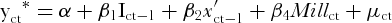 In equation (1), latent variable y* ct is given by following model:
