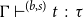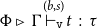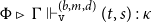 $\Phi \triangleright {\Gamma } \Vdash ^{(b'',m'',|{(u,q)}|_{\texttt {v}})}_{\tt v} {(t,s)}\;:\;{\kappa }$