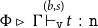 $\Phi _v\, \triangleright \, \Vdash ^{(0,0,0)}_{\tt v} {v}\;:\;{[ \, ]}$