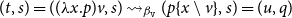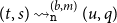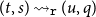 $(t, s) \rightsquigarrow _{{\tt v}} (u,q)$