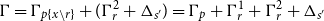 $\Gamma = \Gamma _{p \{x \setminus v\}} + \Delta _s = (\Gamma _p + \Gamma _v) + \Delta _s$