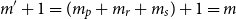 $m' + 1 = (m_p + m_v + m_s) + 1 = m$