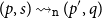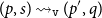 $(p,s) \rightsquigarrow _{{\tt v}} (p',q)$