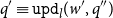 $q \equiv {\tt upd}_{l}(v,s') \equiv s$
