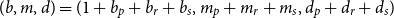 $(b, m,d) = (1+b_p+b_r+b_s,m_p+m_r+m_s,d_p+d_r+d_s)$