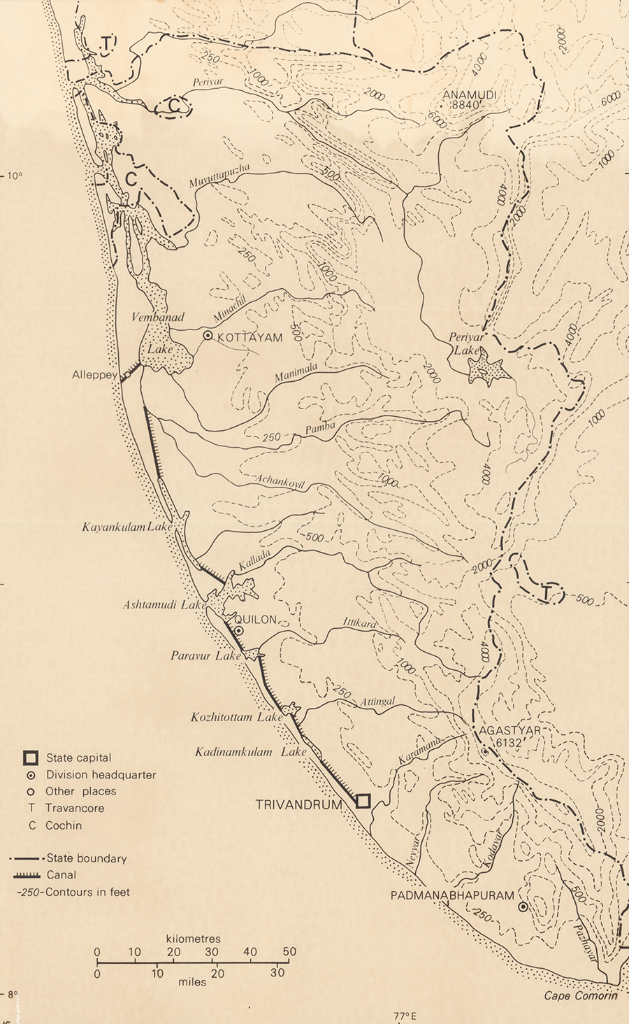 Figure 2. Map of Travancore, circa 1900.