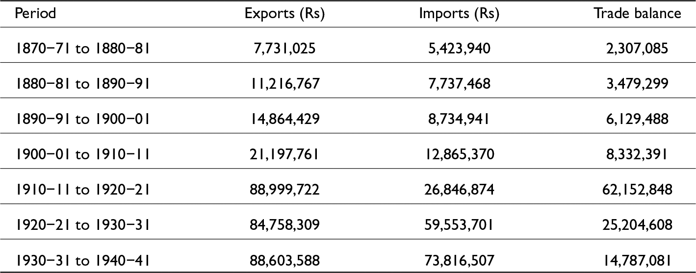 Table 2: Trade balance of Travancore (decadal averages).