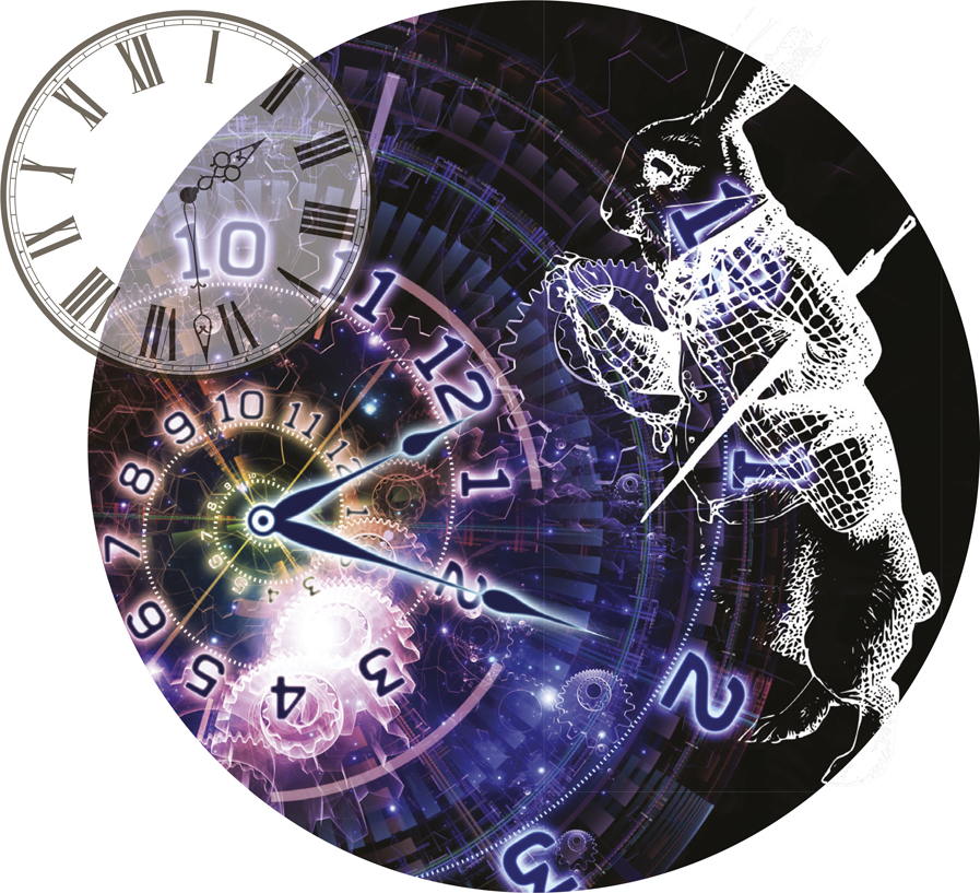 The shortest light pulses that have been produced in the laboratory are on the attosecond (10–18 seconds) time scale. Radioactive decay processes occur over both shorter and longer time scales.11 Lifetimes of human-made products and structures range from a few years to millennia. The shorter time events are so short that we do not currently have any way to directly measure them. The cosmological time scales are based upon analyses that include the standard model of particle physics and our understanding of cosmology. If we lived really long lives, would that alter our perceptions and understanding of these long-time phenomena? If we could perceive time’s passage on the attosecond or femtosecond time scale, would that alter our perceptions and understanding of short time-scale events? How much extra memory would humans have to have to live very long times and perceive events at the really short time scales. No wonder science fiction novels depict advanced alien races as having huge brains. Tick-tock, tick-tock.