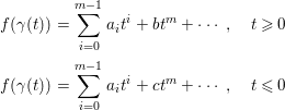 $$\begin{eqnarray}\tilde{{\it\sigma}}^{-1}({\it\gamma}(t))=\mathop{\sum }_{i=0}^{m}b_{i}t^{i}+bt^{\frac{p}{q}}+\cdots \,,\quad b\neq 0,\;m<\frac{p}{q}<m+1,\;t\geqslant 0.\end{eqnarray}$$