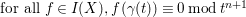 $\text{for all }f\in I(X),f({\it\gamma}(t))\equiv 0\operatorname{mod}t^{n+1}$