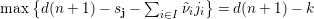 $\operatorname{max}\left\{d(n+1)-s_{\mathbf{j}}-\sum _{i\in I}\tilde{{\it\nu}}_{i}j_{i}\right\}=d(n+1)-k$