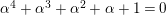 $\unicode[STIX]{x1D6FC}^{4}+\unicode[STIX]{x1D6FC}^{3}+\unicode[STIX]{x1D6FC}^{2}+\unicode[STIX]{x1D6FC}+1=0$