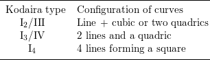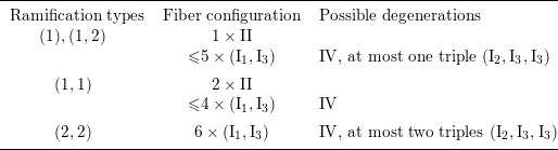 Table 1. Possible singular fibers of