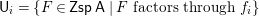 $\mathsf{U}_{i}=\{F\in \mathsf{Zsp}\,\mathsf{A}\mid F\text{ factors through }f_{i}\}$