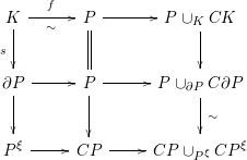 with positive slope. Thus the map (a) is the only map of the diagram which does not tend to weak equivalence as
